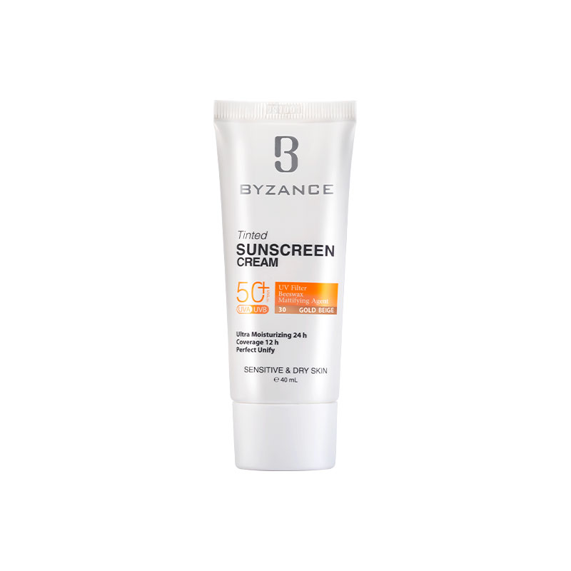 کرم ضد آفتاب رنگی SPF 50 مناسب پوست های خشک و حساس بیزانس