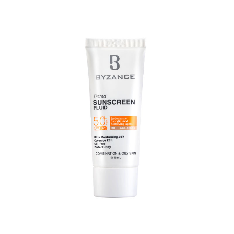 فلوئید ضد آفتاب رنگی SPF 50 مناسب پوست های چرب ، مختلط و مستعد آکنه بیزانس با بهره گیری از تکنولوژی روغن های محلول در آب، استفاده از پیگمنت های صد در صد کوت شده و پوشش دار ، دارا بودن ساختار سبک و پوشانندگی بالا و طولانی مدت طراحی گردیده و علاوه بر محافظت پوست در برابر اثرات مخرب نور خورشید ، به کنترل ترشح چربی ، کاهش چروک های سطحی و علائم پیری زودرس پوست کمک شایانی می کند.